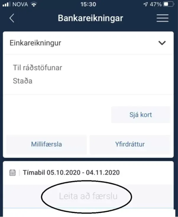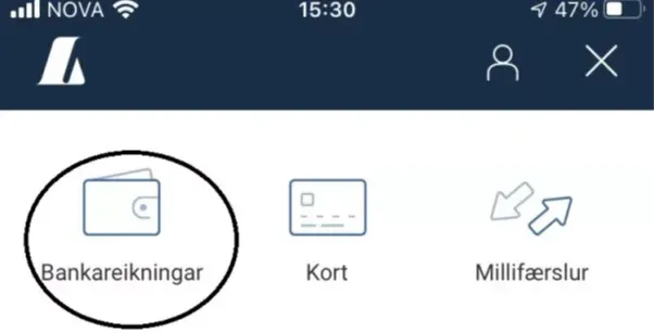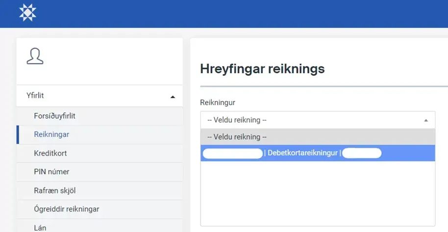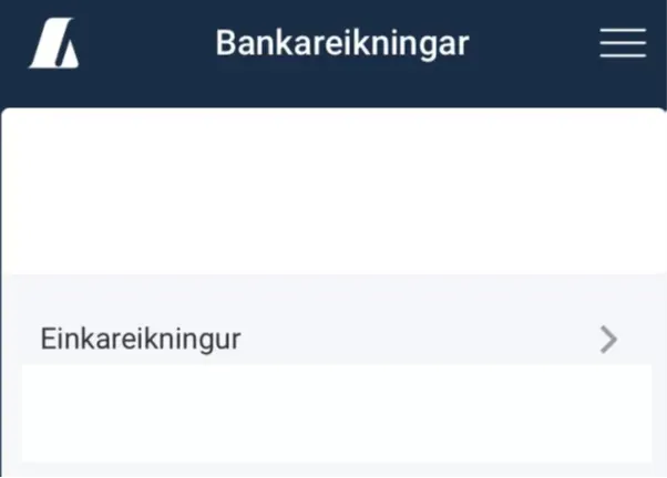 Þegar netbankinn/appið hefur verið opnað er viðeigandi bankareikningur valinn.