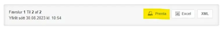 Til að vista skjalið sem PDF þarf fyrst að ýta á Prenta