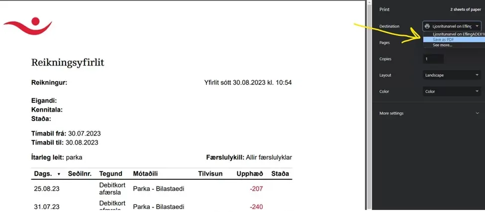 Bankayfirlit leiðbeiningar – Landsbankinn