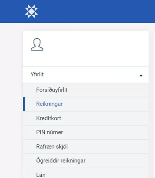 Að innskráningu lokinni – undir Yfirlit skaltu velja Reikningar