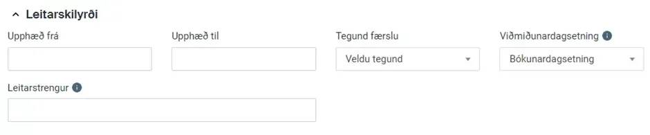 Veldu Leitarskilyrði – og skrifaðu nafn launagreiðanda í reitinn Leitarstrengur