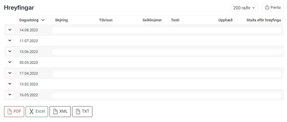 Bankayfirlit yfir greiðslur frá tilteknum greiðanda er hægt að fá í gegnum