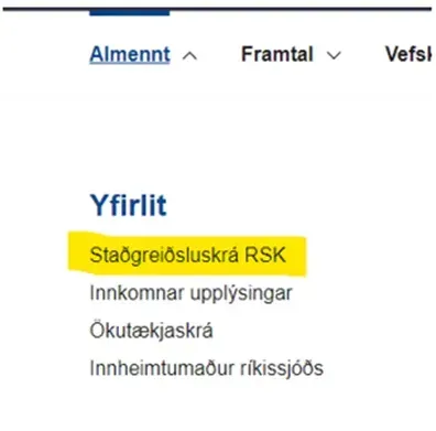 Undir Almennt veljið Staðgreiðsluskrá RSK