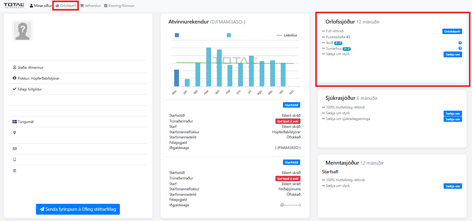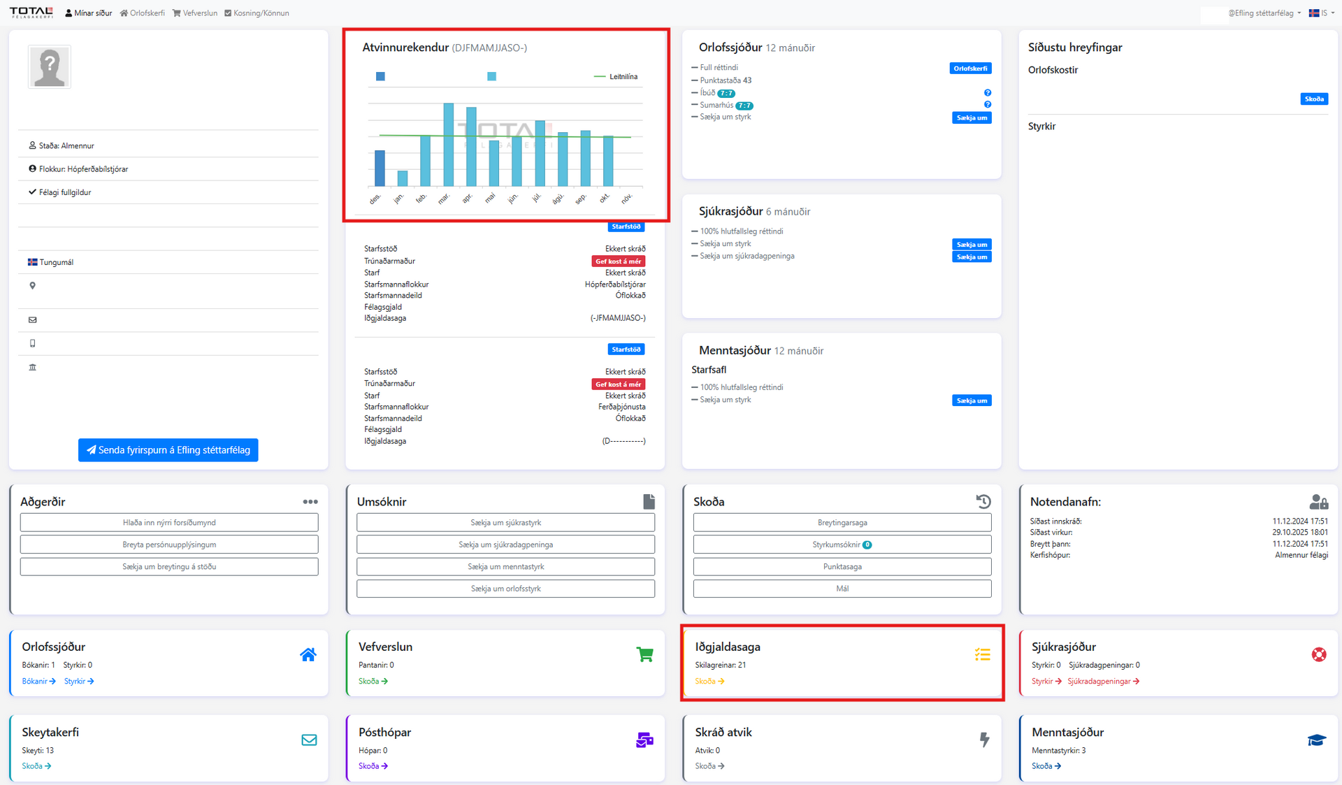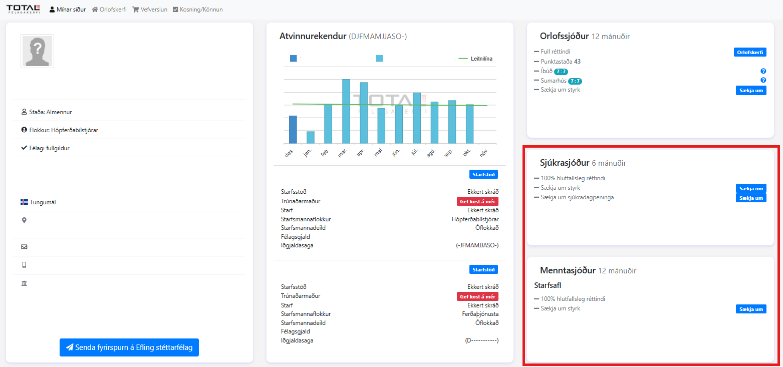 Á mínum síðum átt þú þitt Persónublað þar getur þú m.a. sótt um sjúkra- og fræðslustyrki og sjúkradagpeninga. Einnig getur þú sótt um orlofshús, keypt í vefverslun og gefið kost á þér til trúnaðarstarfa fyrir fyrirtækið sem þú vinnur hjá.